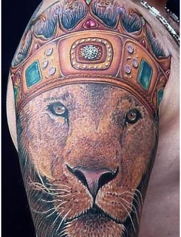 逼真的皇冠和狮子纹身图案