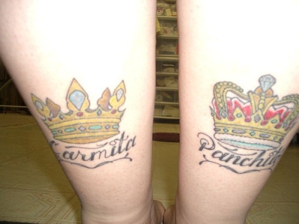 腿部两个不同的皇冠纹身图案