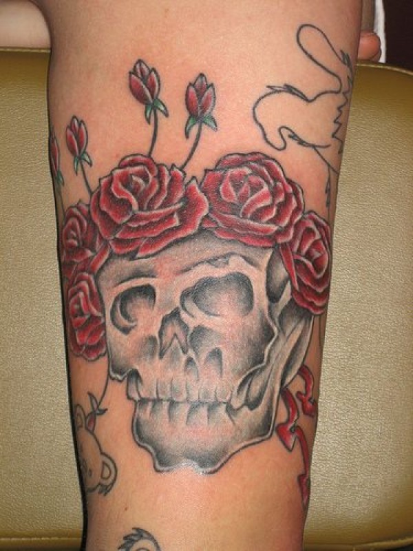 骷髅和玫瑰纹身图案