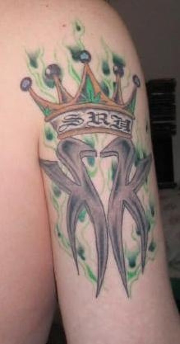 图腾和绿色火焰皇冠纹身图案