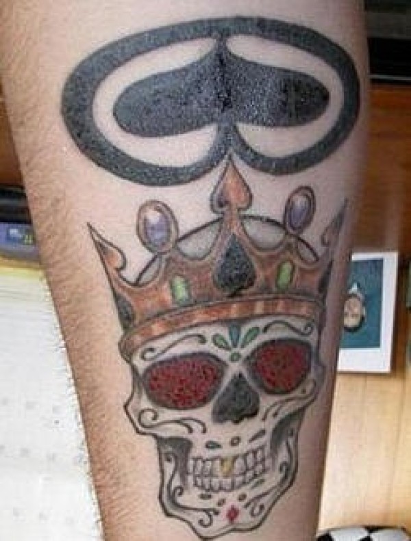 黑桃皇冠加冕的骷髅纹身图案