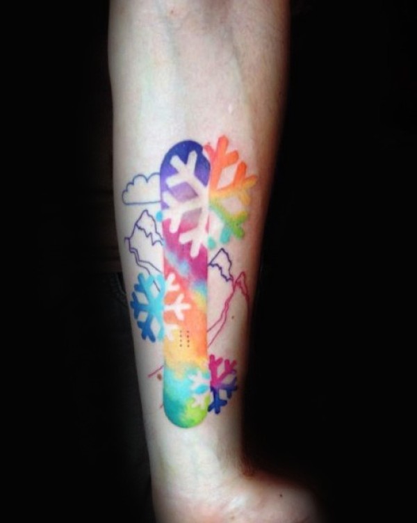 小臂色彩漂亮的滑雪板雪花纹身图案