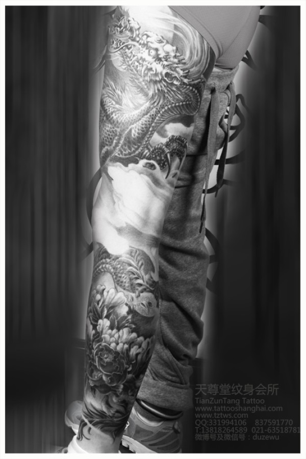 小白龙纹身,富贵牡丹纹身