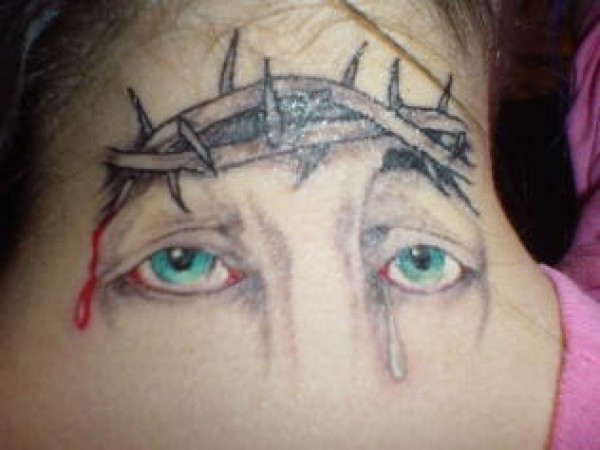 眼睛和荆棘皇冠颈部纹身图案