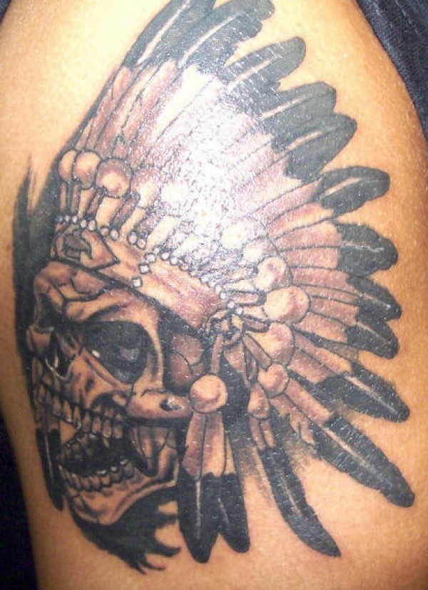 骷髅印度羽毛冠纹身图案