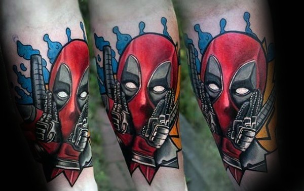 手臂搞笑的可爱死侍彩色纹身图案