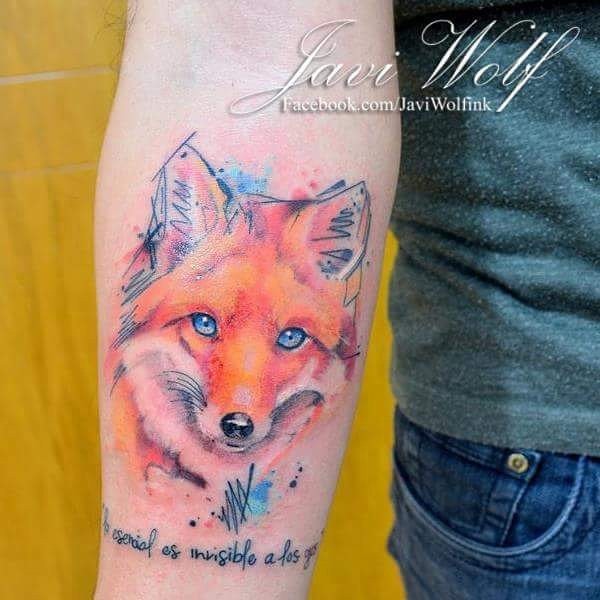 手臂水彩风格中等大小的狐狸字母纹身图案