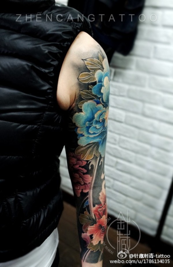 直播:针藏刺青逸凡师傅作品,牡丹花臂