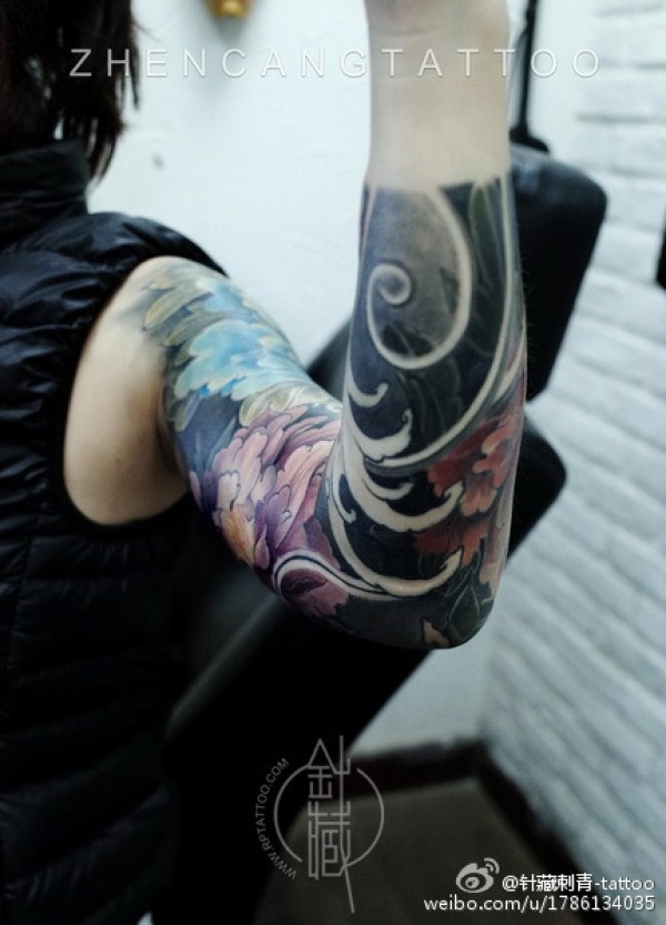 直播:针藏刺青逸凡师傅作品,牡丹花臂