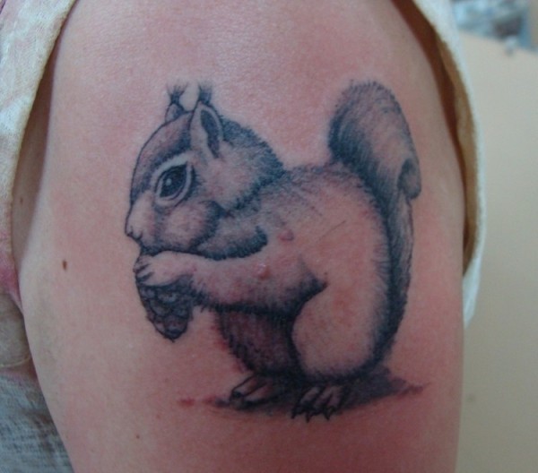 大臂松鼠啃松果纹身图案