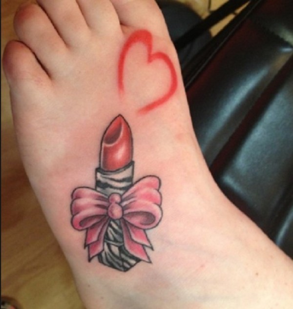 脚背蝴蝶结口红与心形纹身图案
