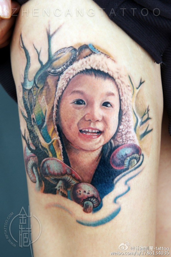 父母把孩子的照片和生日纹在了身上~