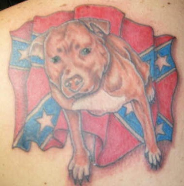 联邦旗帜与可爱的狗纹身图案