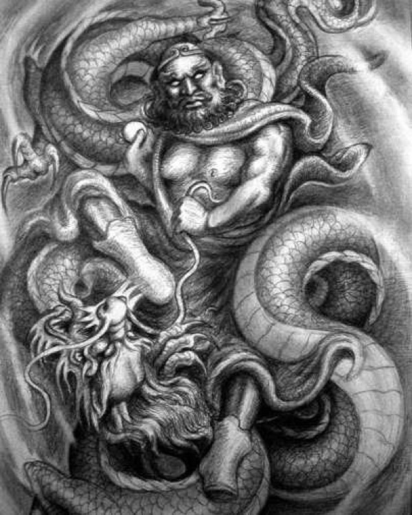 龙纹身手稿_一组老传统黑灰龙手稿纹身图案