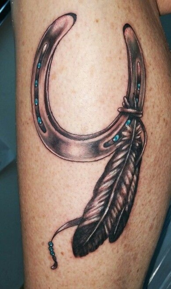 羽毛和马蹄铁纹身图案