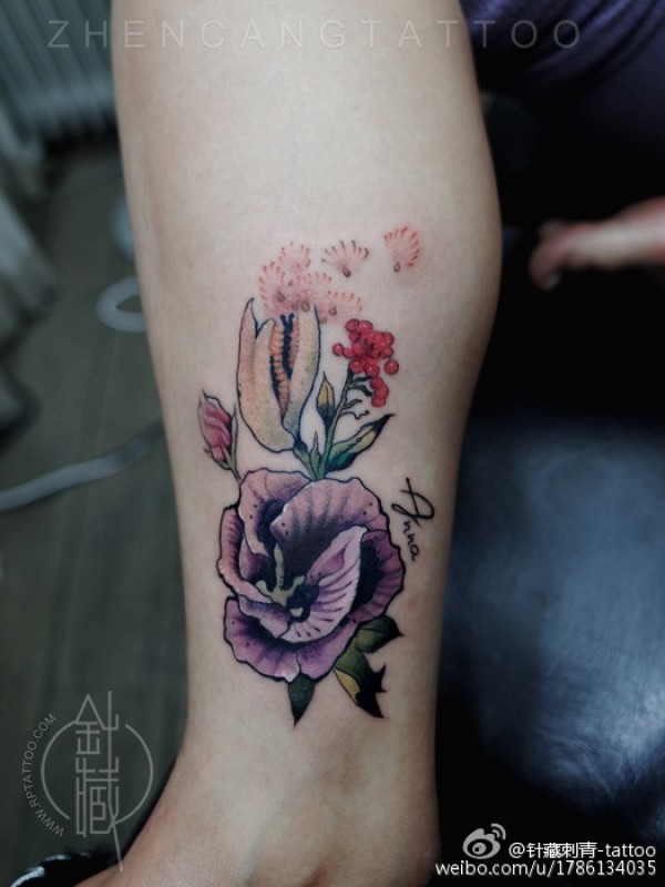 插画风格的花朵变成纹身上身效果一样棒棒哒~