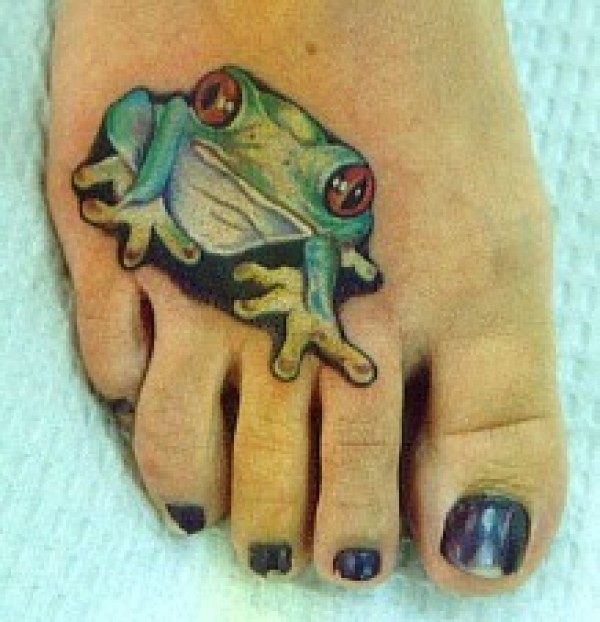 脚背可爱的绿色青蛙纹身图案