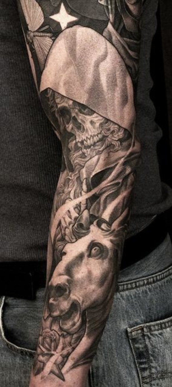 手臂真逼真的死神和马纹身图案
