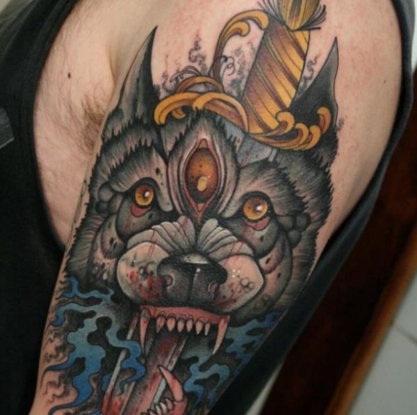 new school令人毛骨悚然的恶魔狼匕首纹身图案