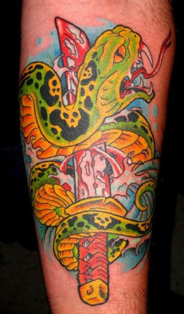 匕首刺杀毒蛇纹身图案