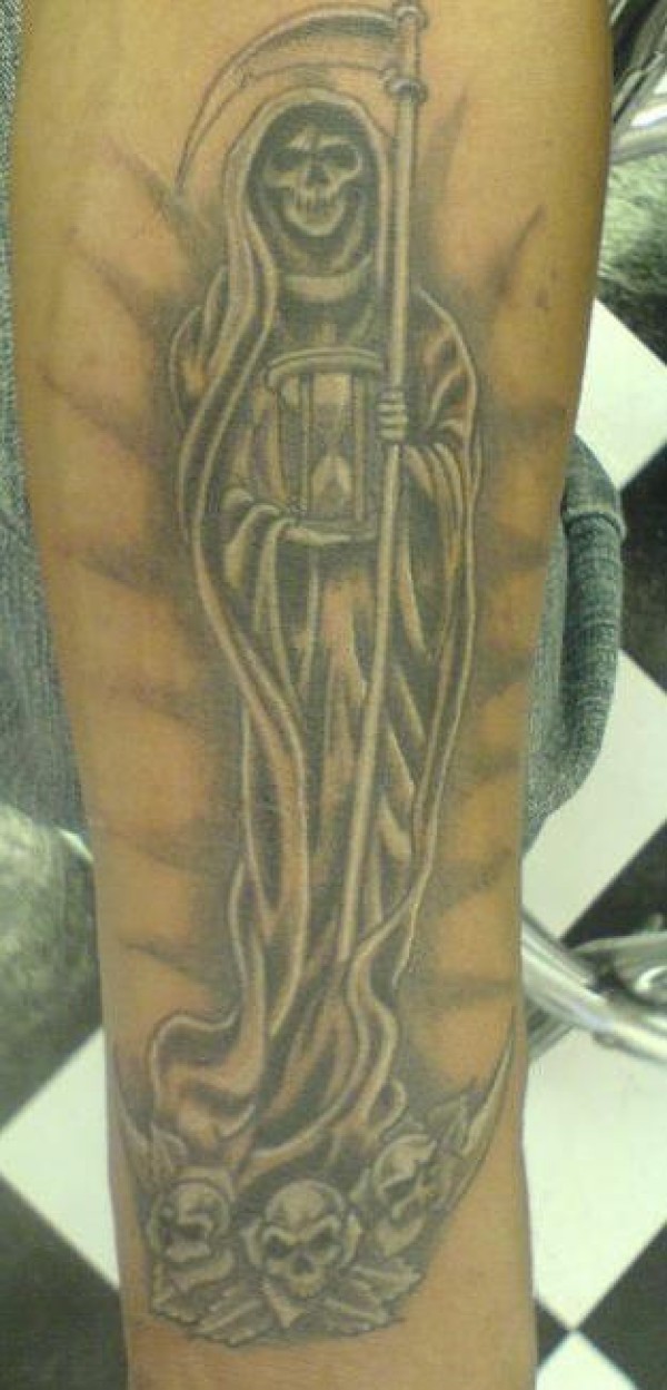 死神踩在骷髅上纹身图案