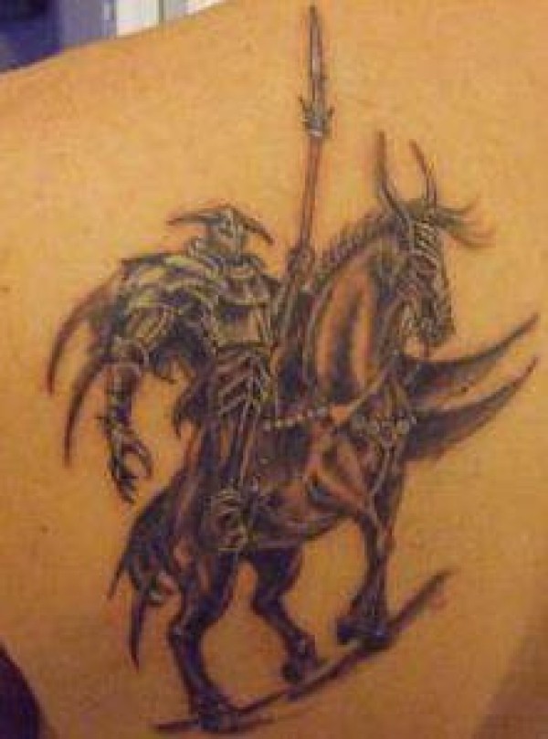 背部死亡骑士和马纹身图案