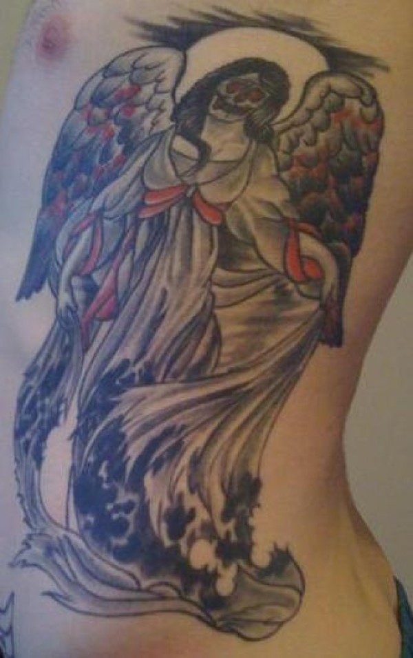 侧肋带翅膀的死神纹身图案