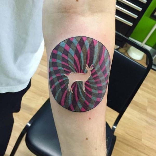 小臂圆形图与鹿个性纹身图案