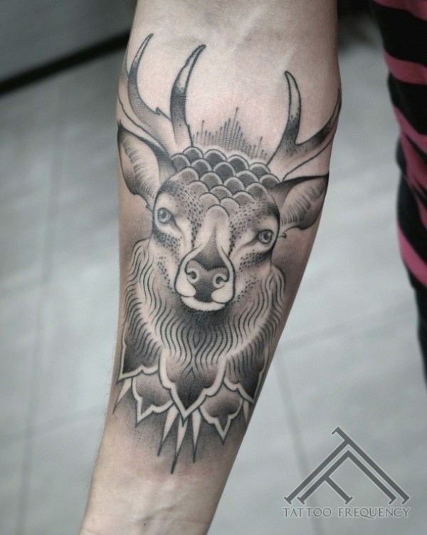 小臂插画风格彩色鹿纹身图案