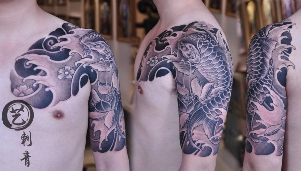日式手彫刺青作品—半甲龙很感谢客户认可手彫刺青,手彫是日本纹身的手工雕刻技术,时间可以追溯到日本17世纪的江户时代。19世纪,手彫技术被日本黑帮挪用,被用作入会仪式,象征着从此就是江湖中人。在日式传统