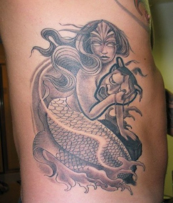 恶魔美人鱼和般若纹身图案