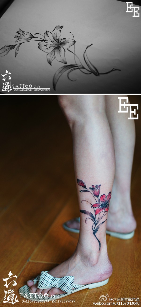 清新花朵腿部纹身图案图片_植物纹身图案大全_纹身图吧
