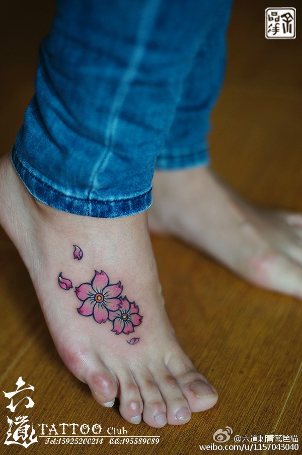 清新小桃花脚踝纹身_脚部纹身图案大全_纹身图吧
