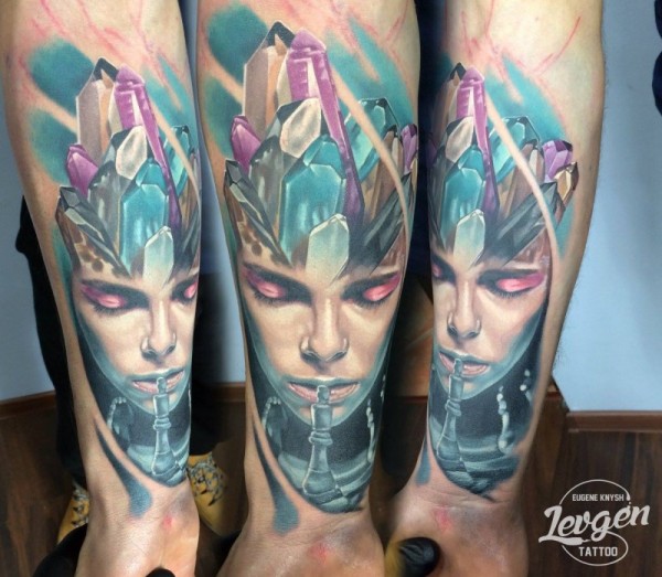 new school小腿彩色女人与钻石纹身图案