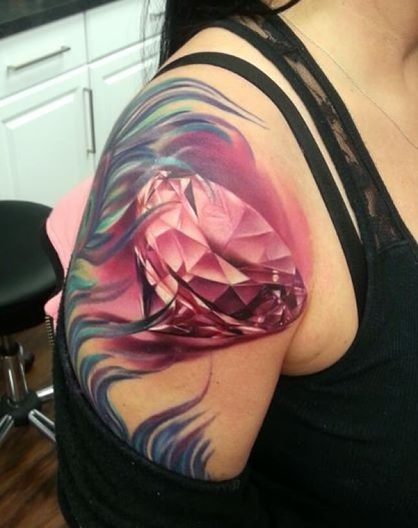 肩部new school彩色粉红色钻石纹身图案