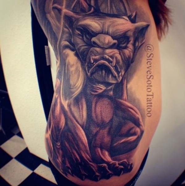 侧肋new school彩色毛骨悚然的魔鬼纹身图案