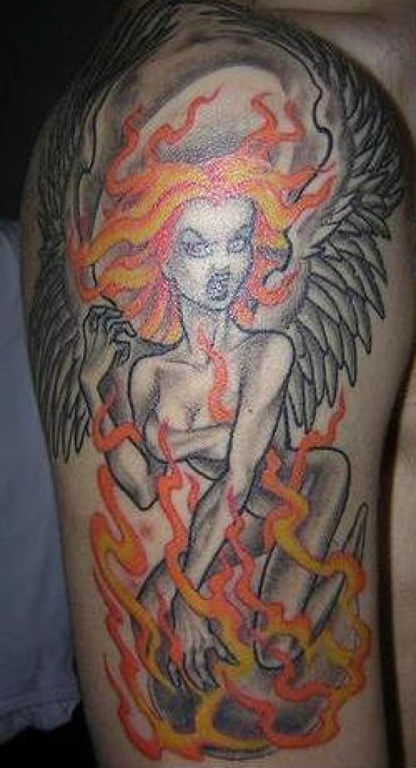 火焰和女人恶魔纹身图案