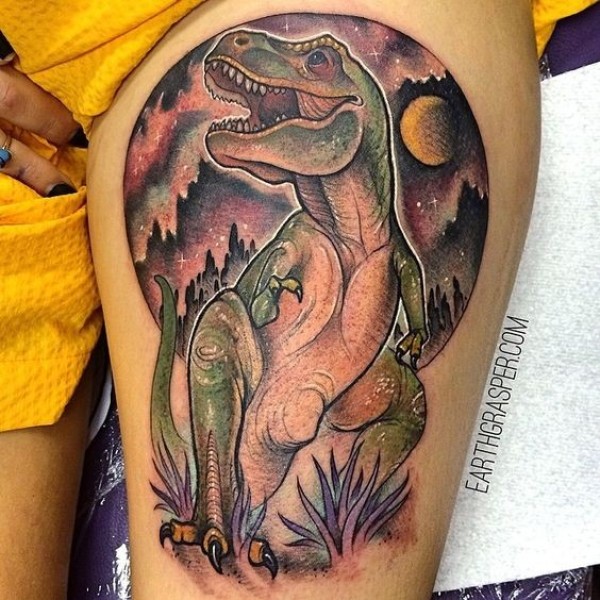 大腿new school彩色恐龙纹身图案