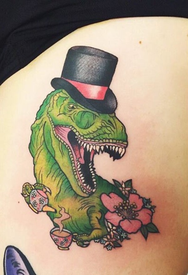 old school彩色绅士恐龙纹身图案