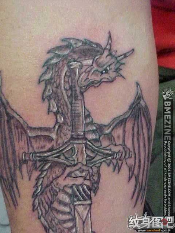 龙纹身手稿_一组老传统黑灰龙手稿纹身图案
