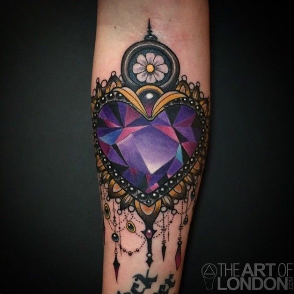 手臂new school彩色心形钻石纹身图案