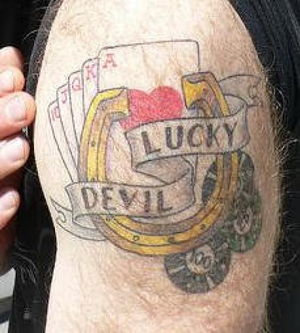 手臂彩色马蹄铁扑克牌和字母纹身图案