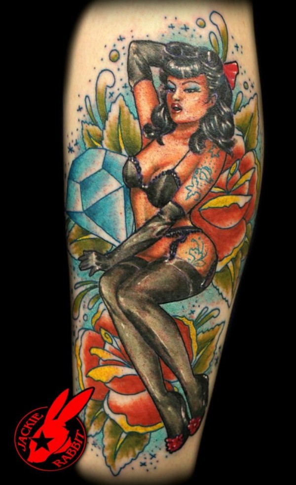 old school彩色性感女人花朵和钻石图案