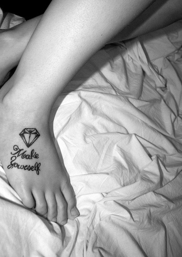 脚背钻石和英文字母纹身图案