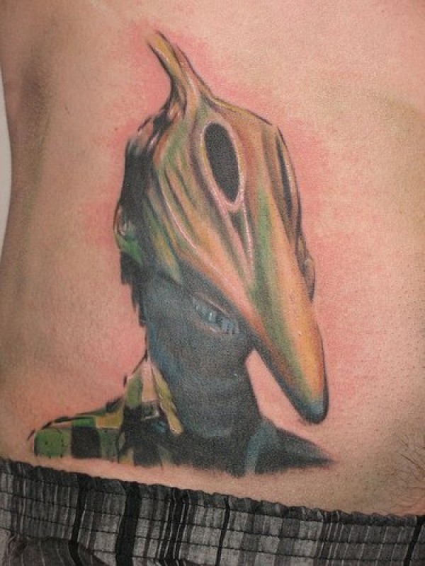 带有恐龙面具男性纹身图案
