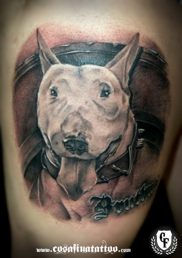 大腿插画风格彩色有趣的狗和字母纹身图案