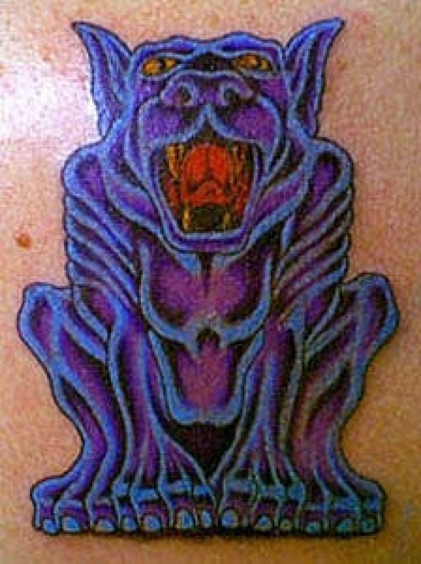 紫色的石像鬼与狗头纹身图案