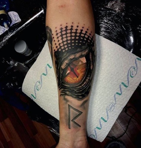 new school梦幻彩色龙的眼睛和字母纹身图案