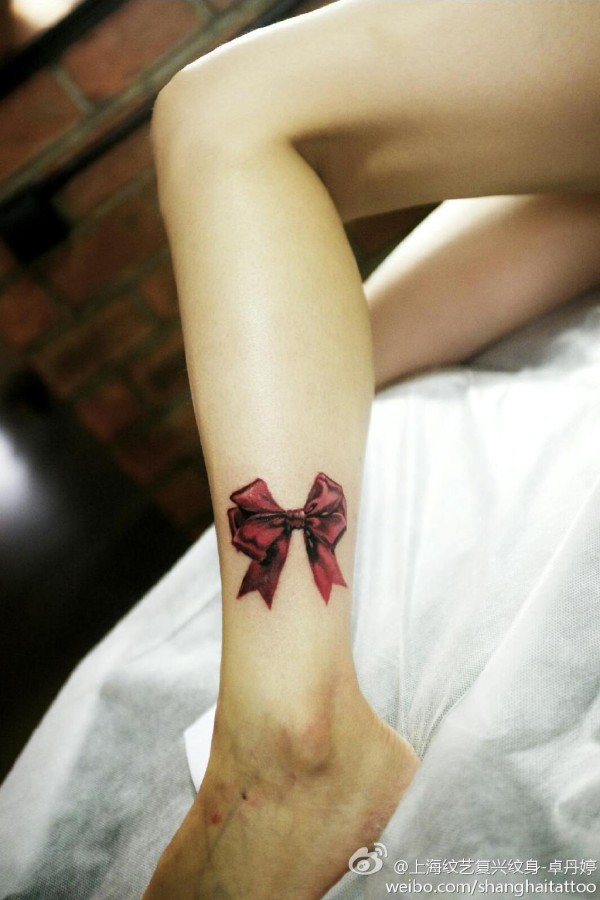 小腿红色蝴蝶结