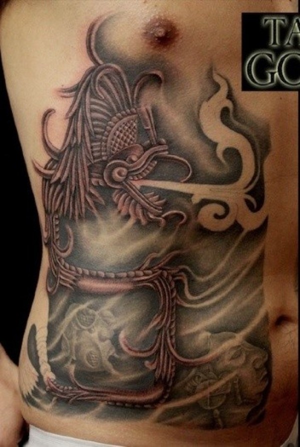 腹部彩色古代绘画神秘龙纹身图案